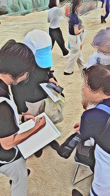 要約筆記というのは、聞こえに不調を持つ方に対し、音声を手書きによりリアルタイムで文字に変え、その方に要約を伝えるものです。騒がしい状況でも集中して言葉を聞き取り、ポイントを押さえてすぐに文字化する技術、まさにプロの仕事と感銘を受けました。