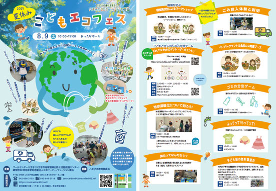 8/9に『あったかホール』2階の『クールセンター八王子』で、今年も『夏休みこどもエコフェス』が開催されます。
